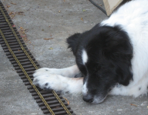 As you may be aware the Bowls Club has very kindly offered us storage/working space for GER and its refurbishment so how could we refuse? We had a derailment which was cause by a certain canine asleep on the line...... TJ (life member) strikes again!