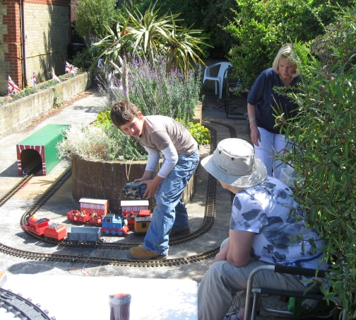 John Spann very kindly arranged for the GER and parts thereof to be stored in the Ladies Changing Room (no puns please) to enable small teams to gain access and do the electric work and other boys stuff! required. They (Milton Bowls club) decided to put on a Summer Fete this year to raise money for the Molly Wisdom Hospice. The young man in the pictures (who was in charge) is James Starr (my nephew) and the display plus Children's Drive a Train Sessions were a great success. The Kent Team on duty (and under the direction and supervision of James) were:- Martin and Elizabeth Cook + TJ John and Julia Morgan James Starr John Spann Martin Piper also attended on Sunday (he arrived just in time for an ice cream!!!