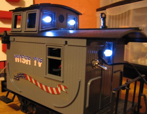 ![]() the camera caboose, the camera is approx 1cm x 1cm, the biggest part is the wide angle lens, its mounted between two of the LEDs in the cupola |