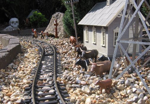 Also some of the buildings and lineside features have sound unit on timers such as the saloon, church, farmers yard and harbour. The railway usually holds 2 open days a year, one on Easter Saturday and one later in the year around September, although this year we hope to hold another in the summer. After almost 14 years of garden railroading I find it such a fantastic hobby!" | ![]() |